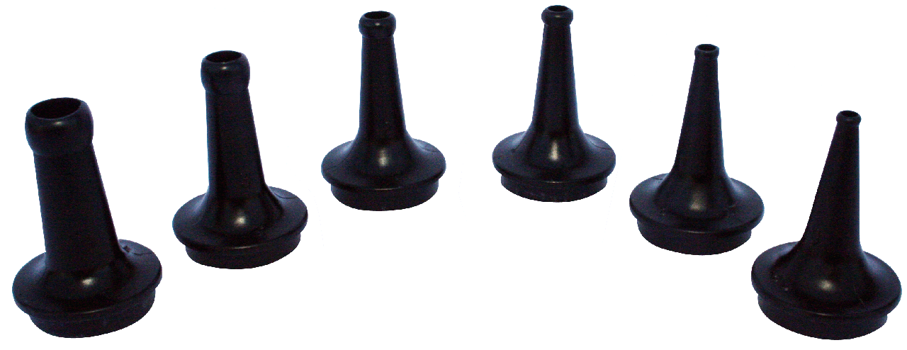 Six sizes, ranging from 2.5mm to 8mm. Flanged tips improve patient comfort. The Slope of the sides permits easier access for instruments and helps to reduce glare. Glare is further reduced by the dull black finish. Will withstand sterilization by all conventional methods.