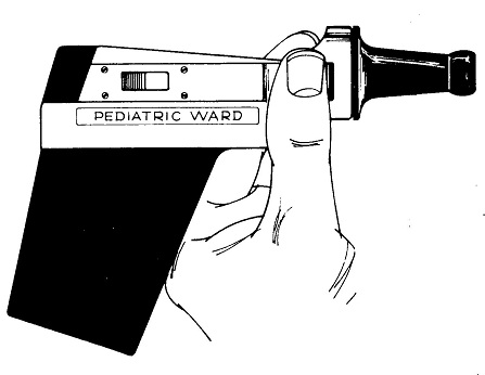 - To activate the switch built into the side of the instrument, simply exert a slight amount of pressure with the finger and thumb holding the Otoscope. On relaxing this pressure, the switch will automatically return to "off" (prolonging life of battery and lamp).
